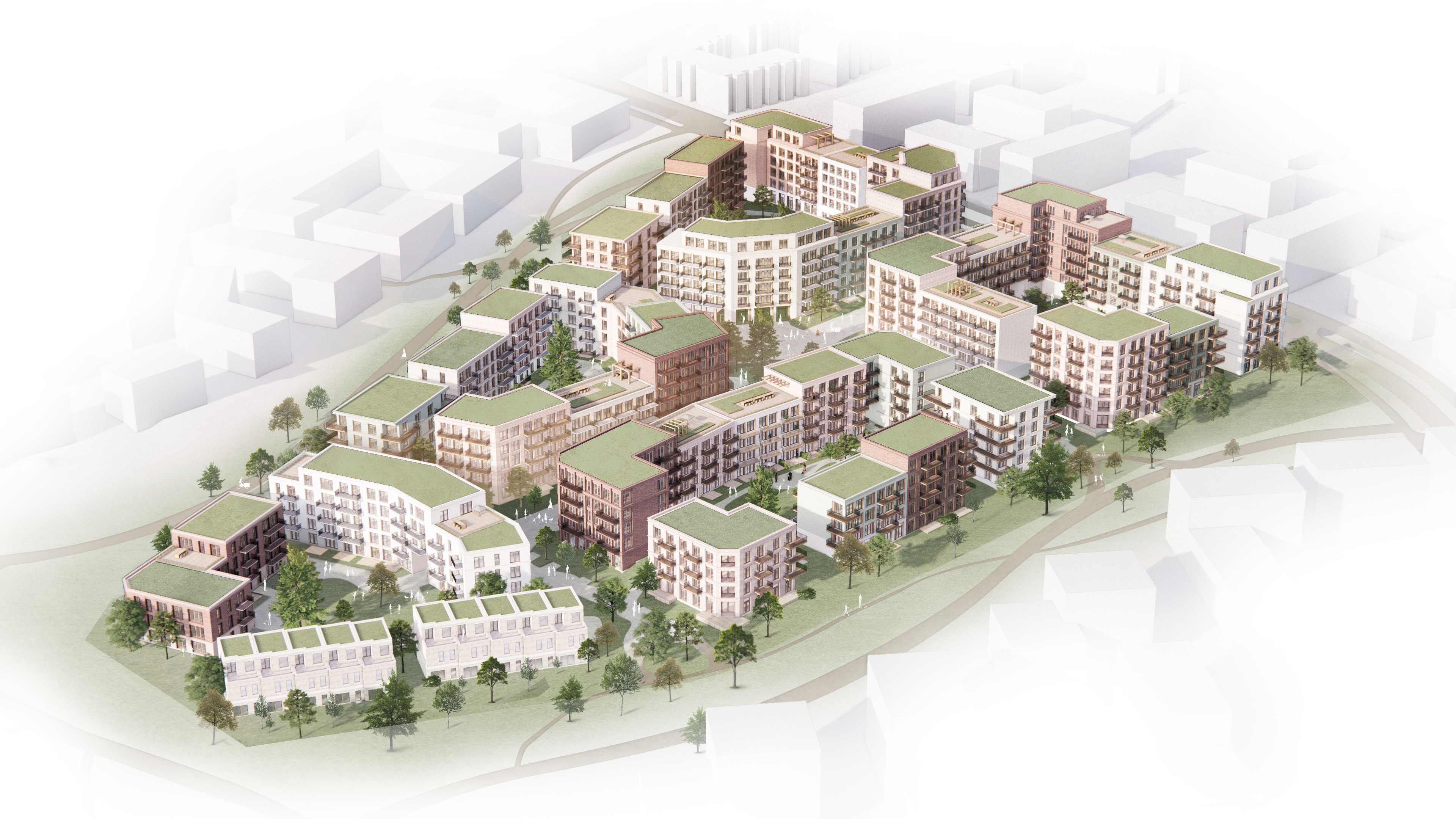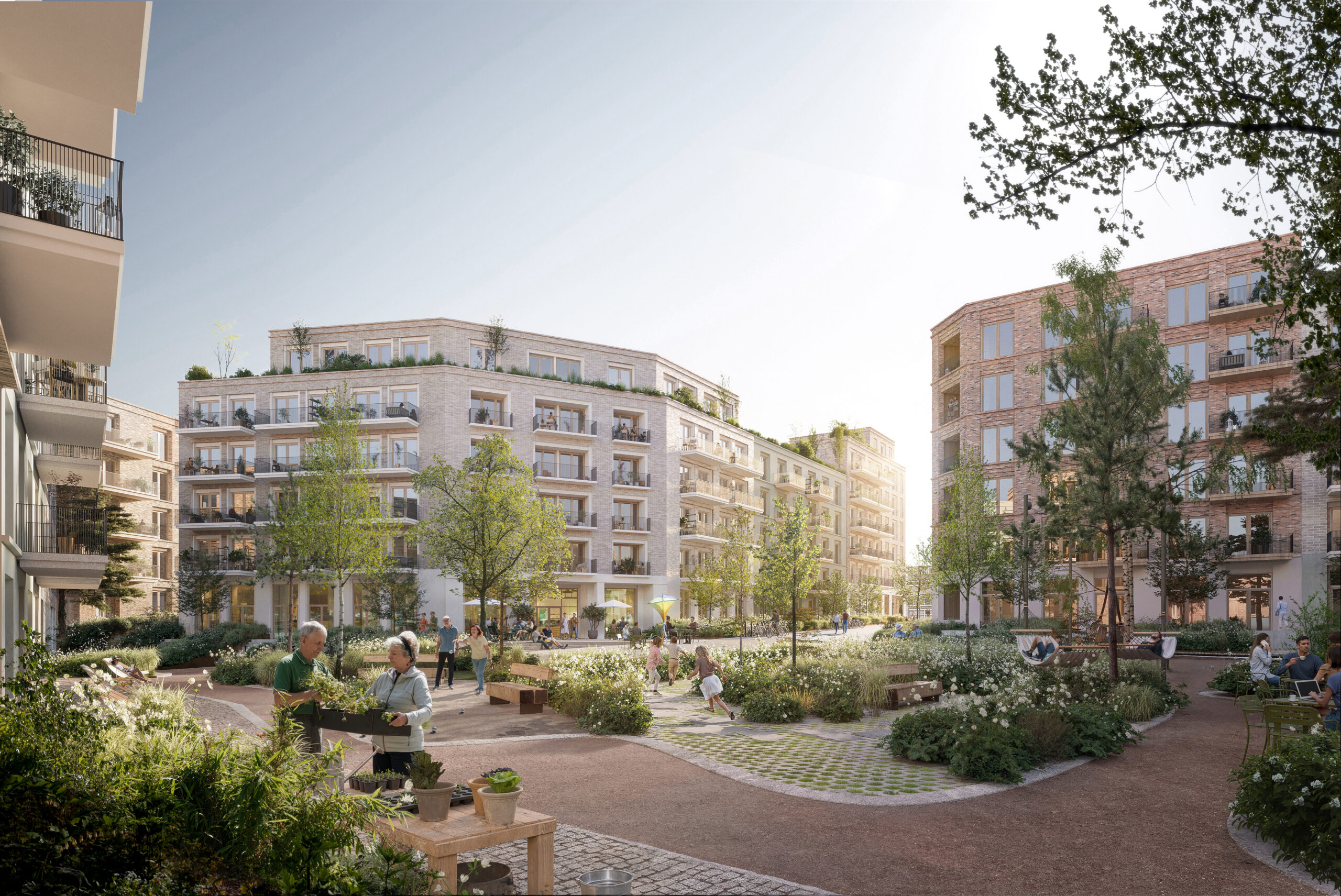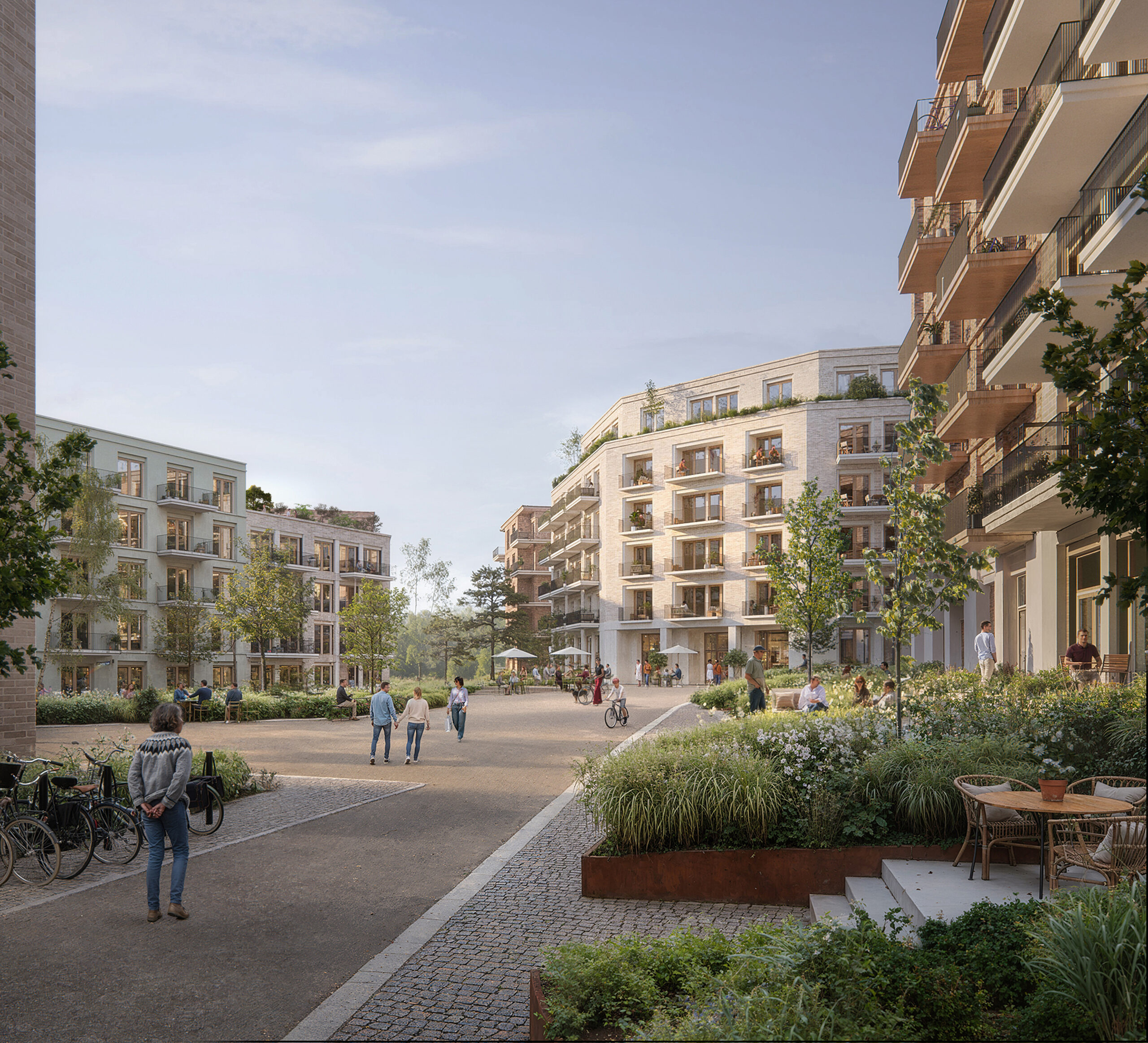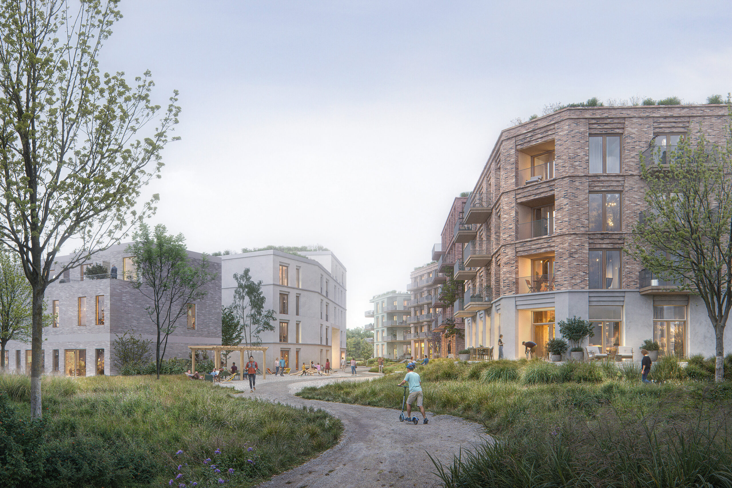Samtidig har vi gitt prosjektet et moderne tilsnitt, med løsninger tilpasset vår tid og dagens boformer. Ambisjonen er å legge til rette for et robust grep som oppleves både tidløst og tidsrelevant, med en tydelig identitet som skiller seg ut fra de omkringliggende feltene og setter menneskets trivsel i sentrum.
