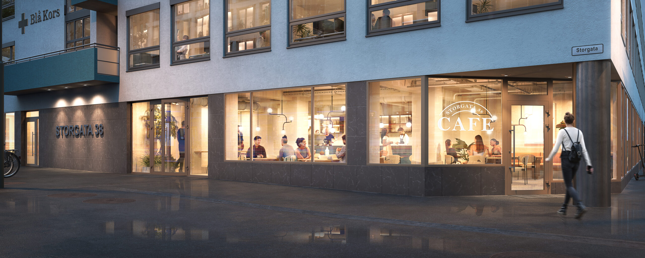 Storgata 38 er eid av Blå Kors og stod ferdig i 1940. Gårdeier har nå satt i gang en omfattende rehabiliteringsprosess for å gjøre bygget til et attraktivt kontorbygg.