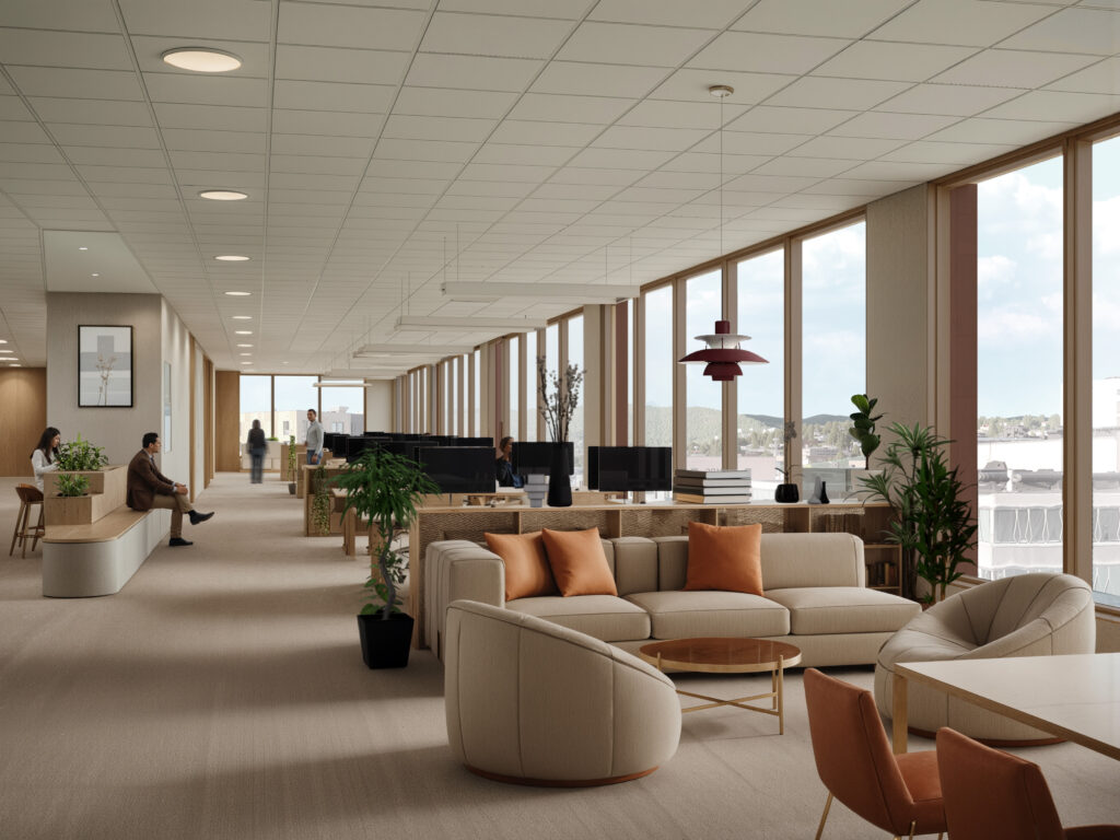 Kontorbygget ligger langs Vitaminveien, og vil få en tydelig arkitektonisk karakter med fasade utført i bronsefarget anodisert aluminium og betong eller stein. Første etasje består av tre forretningslokaler og et felles inngangsparti for næring og kontor. I de seks etasjene oppover prosjekteres det for kontorlokaler, mens U1 består av et forretningslokale og bil- og sykkelparkering. I plan U2 planlegges i hovedsak bil- og sykkelparkering, boder og tekniske rom. Den tilbaketrukne toppetasjen avslutter bygget mot himmelen, og bidrar til å dempe byggets opplevde høyde.