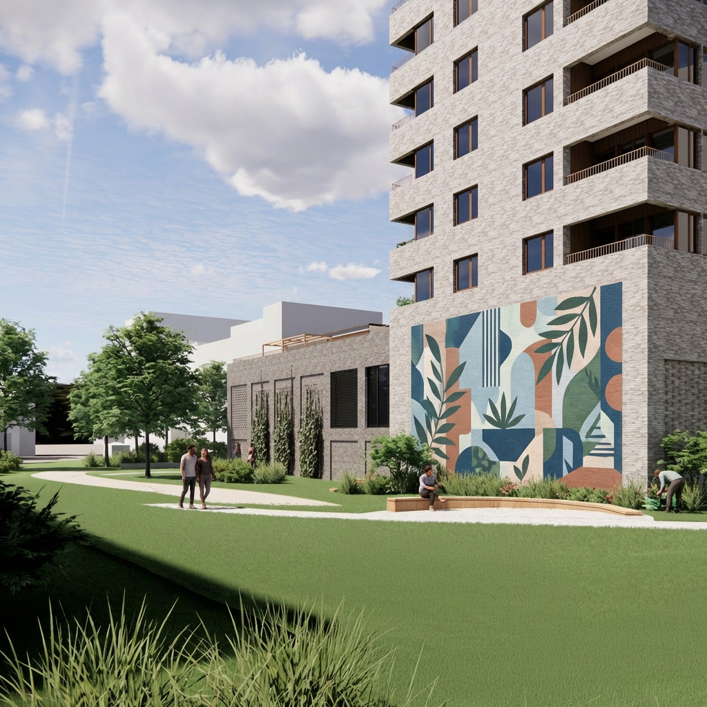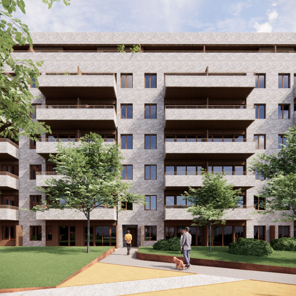 Boligdelen i Vitaminveien 6 vil bestå av ca. 100 leiligheter i ulike størrelser, fordelt på sju etasjer. Boligfasadene er planlagt gjennomført i beige tegl, med variasjon og spill i fargen. Teglen kombineres med trekledning ved balkonginnhuk og ved inngangspartiene. Kombinasjon av tegl og lyst treverk gir et estetisk pent uttrykk som står seg godt over tid.